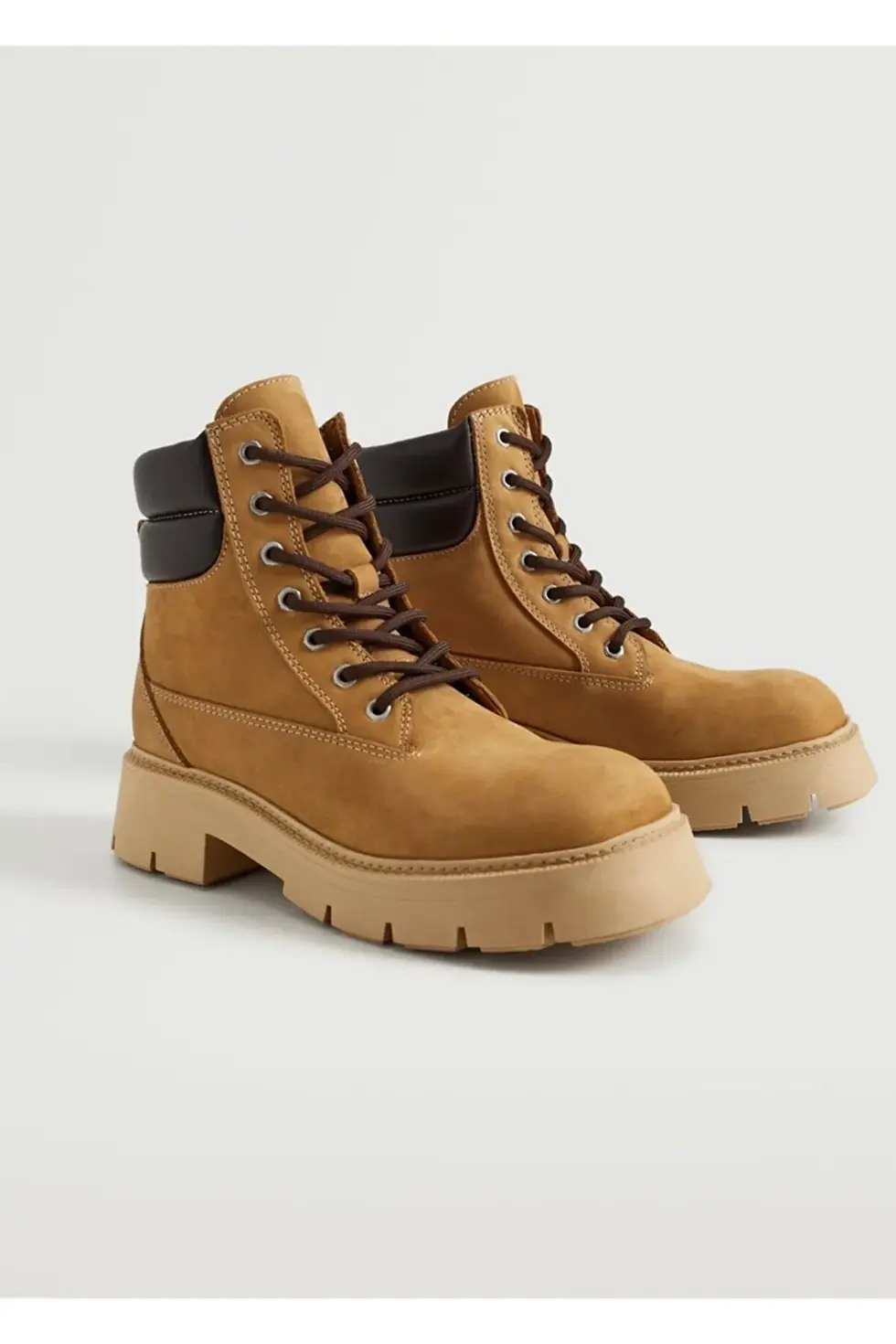 MANGO Kadın Orta Kahverengi Bağcıklı Deri Bot