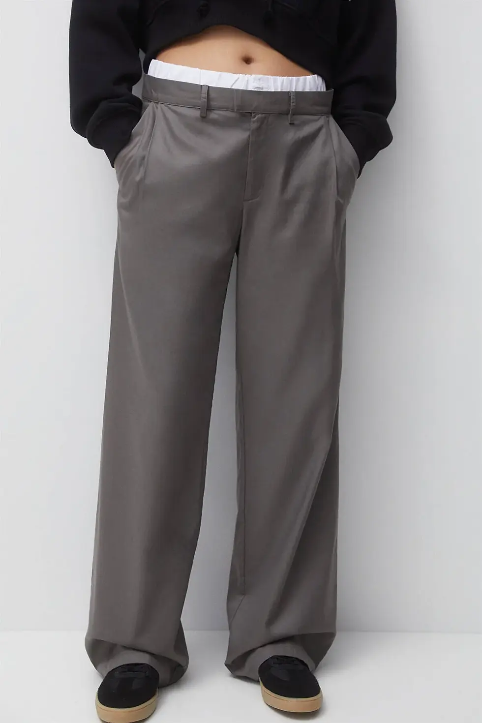 Pull & Bear Pensli geniş paça kumaş pantolon