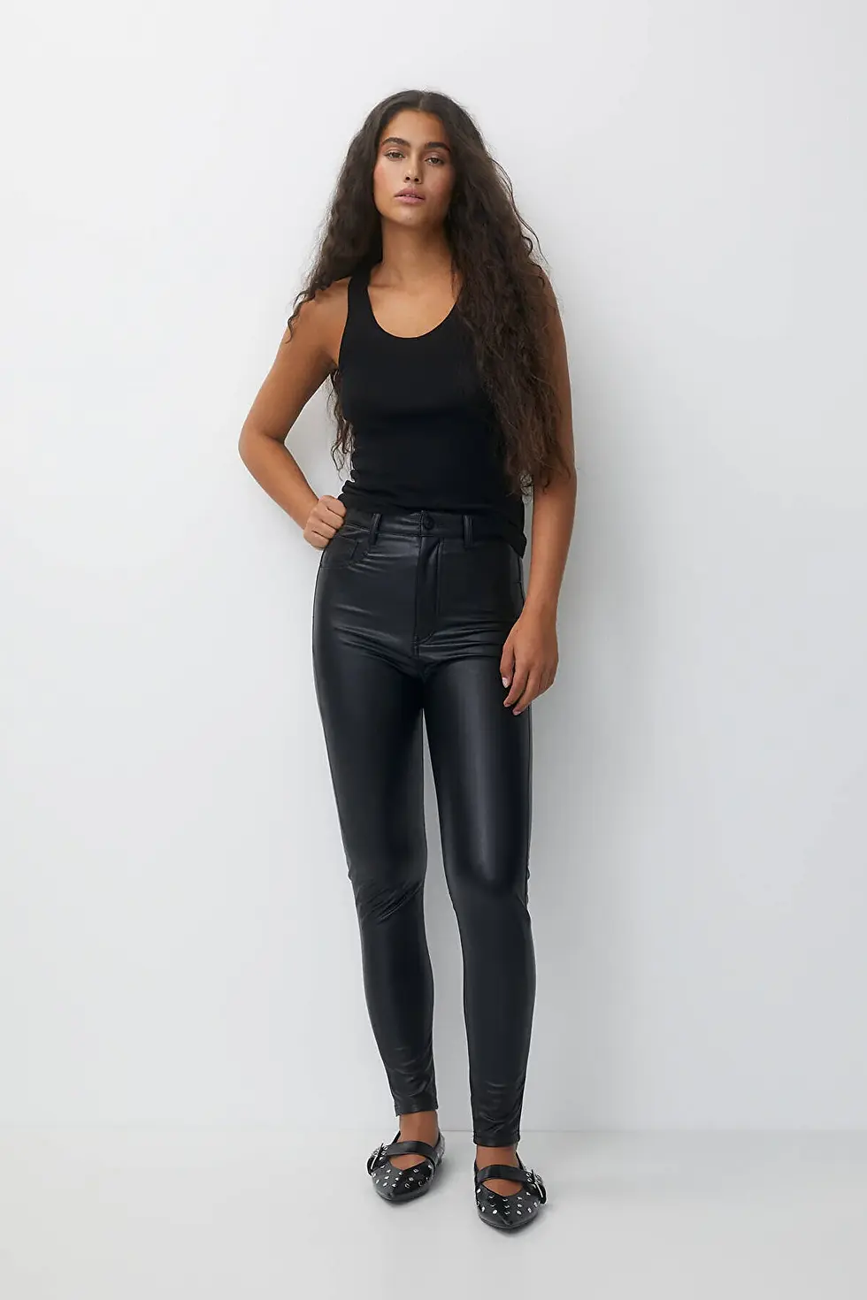 Pull & Bear Suni deri yüksek bel skinny pantolon