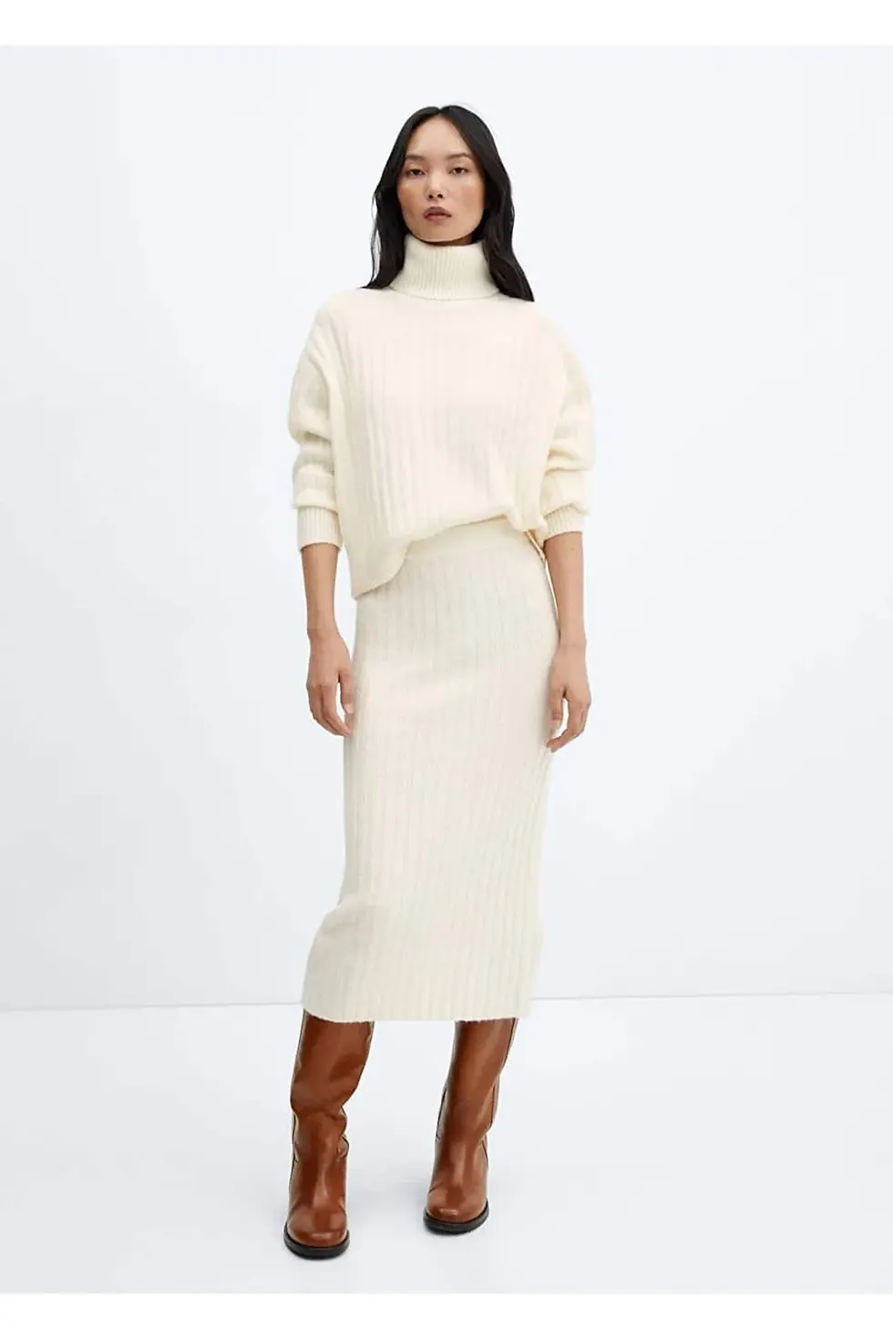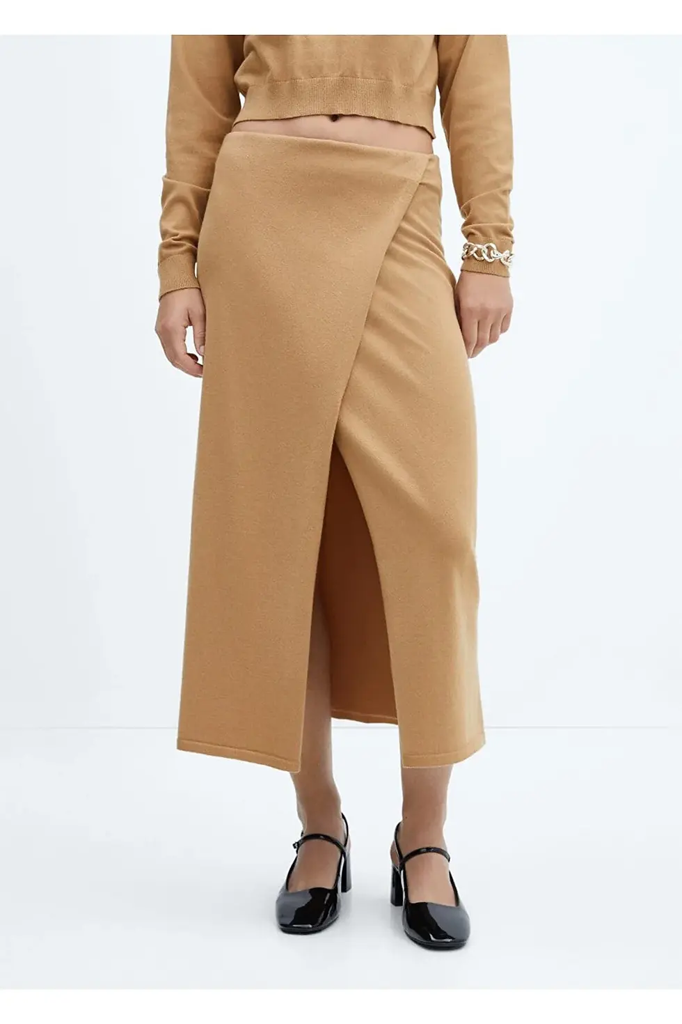 Mango Kaz Ayağı Desenli Yırtmaçlı Etek