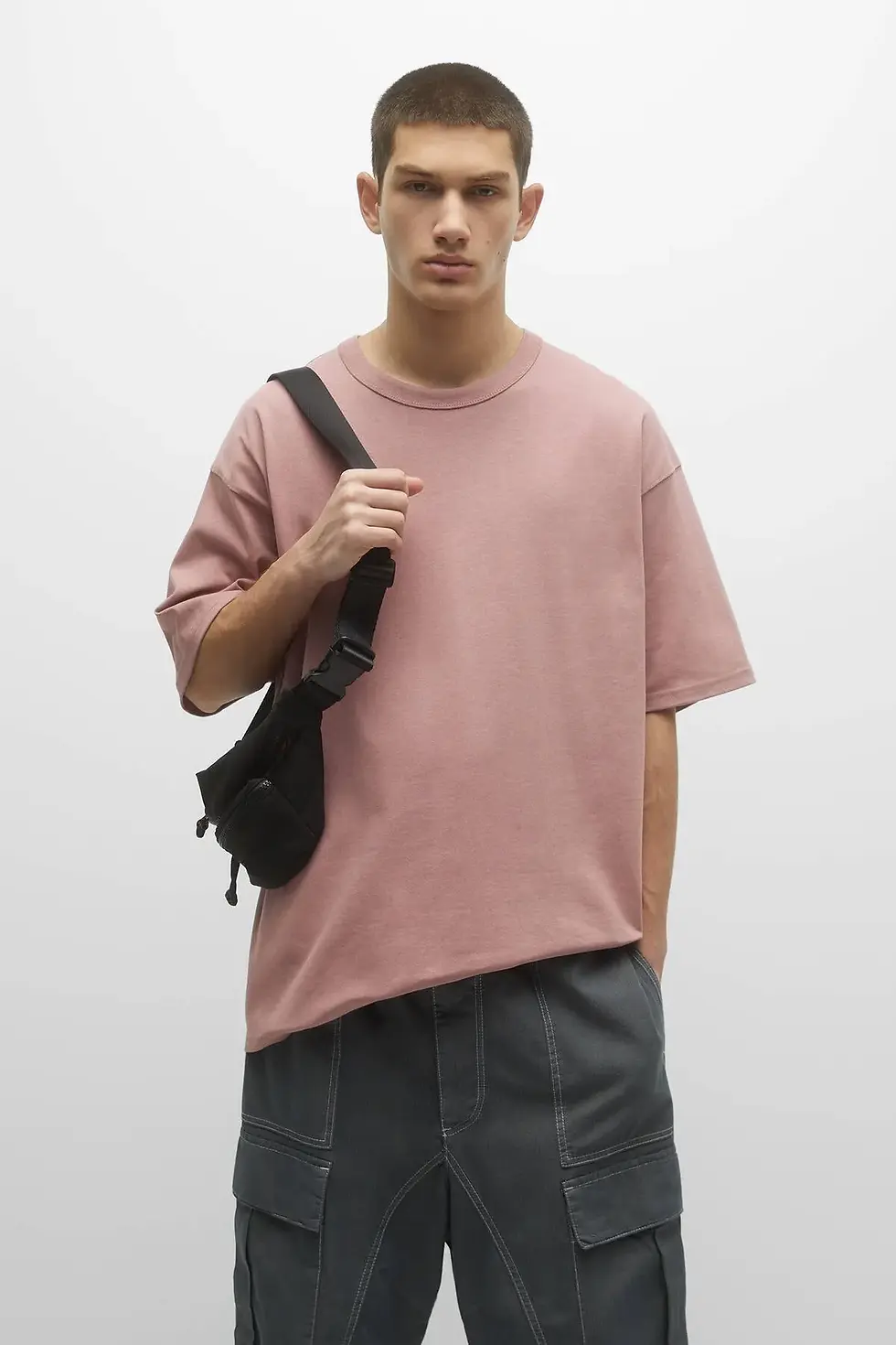 Pull & Bear Erkek Kısa kollu ağır kumaş t-shirt 04239917