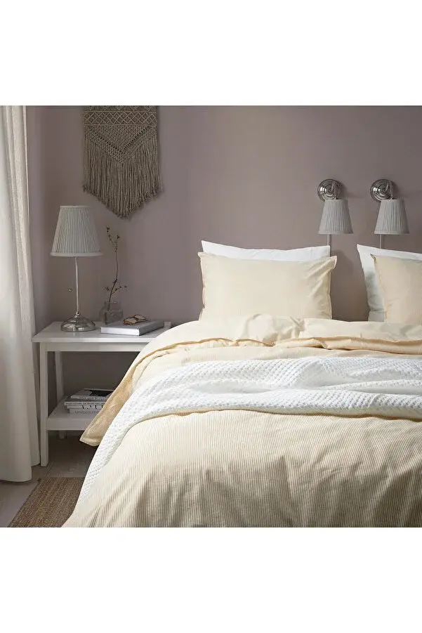 IKEA BERGPALM çift kişilik nevresim seti, sarı-beyaz, 240x220/50x60 cm %100 pamu