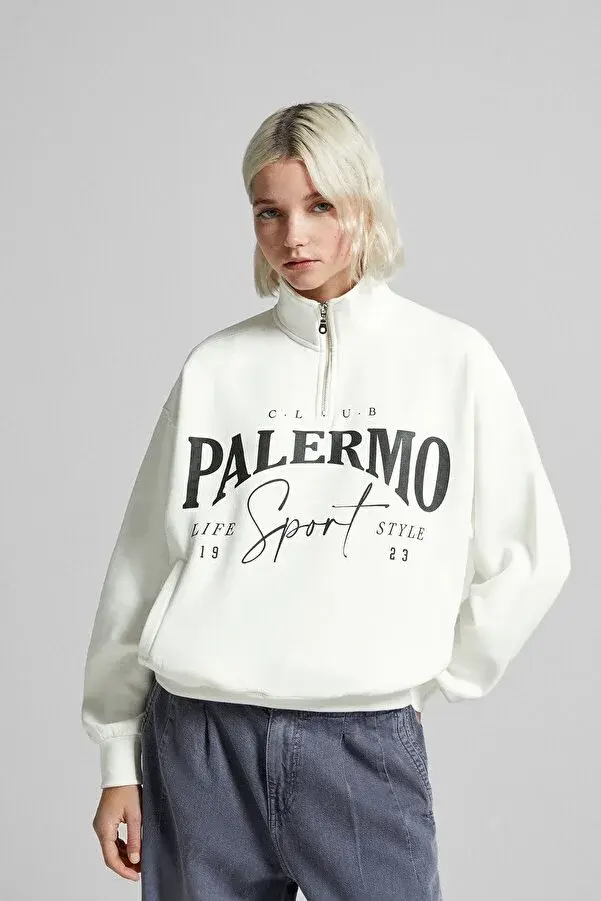 Bershka Fermuarlı desenli kapüşonlu sweatshirt