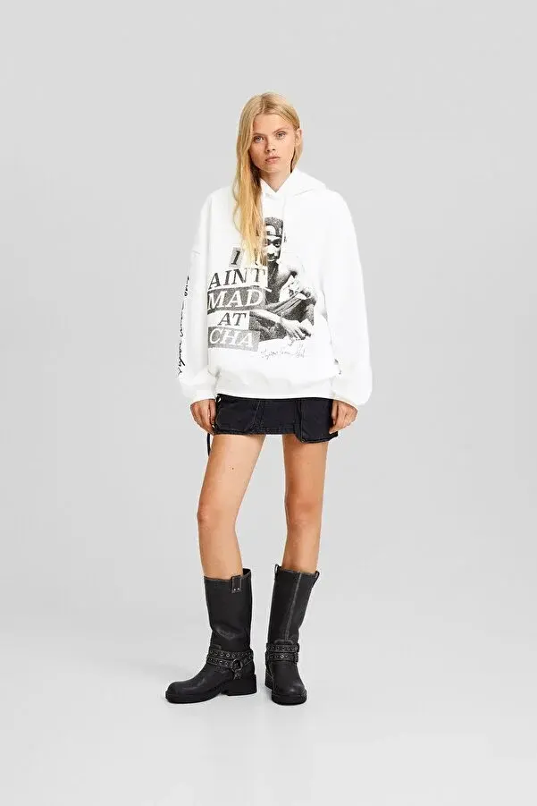 Bershka Tupac desenli kapüşonlu sweatshirt