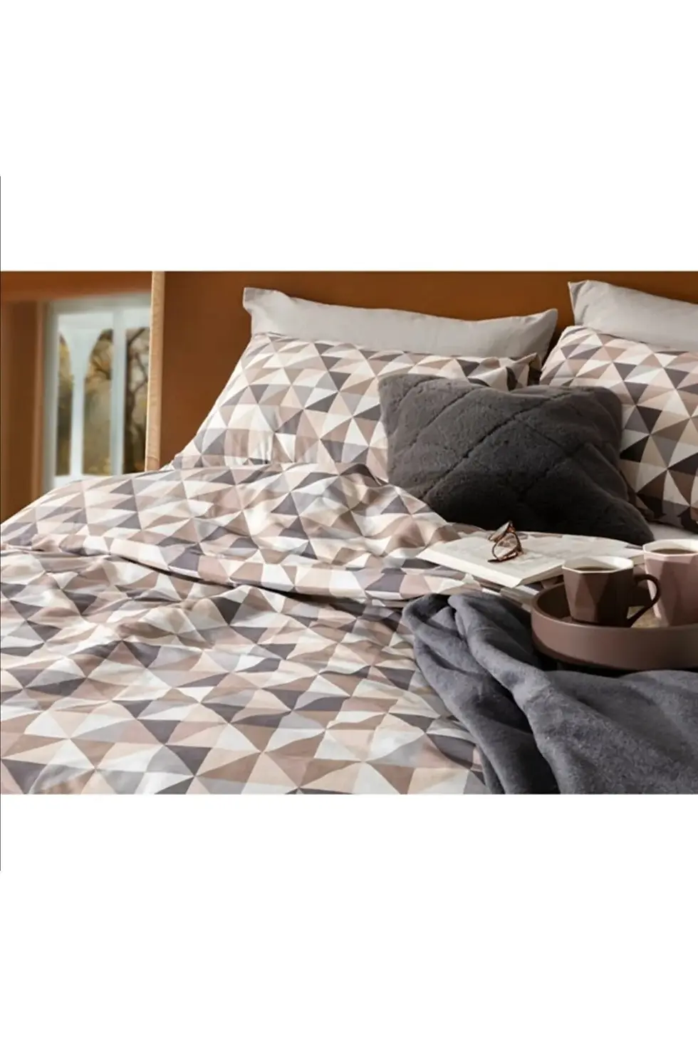 English Home Trigon Pamuklu Super King Nevresim Seti 260x220 Cm Gri - Bej (2 Ade