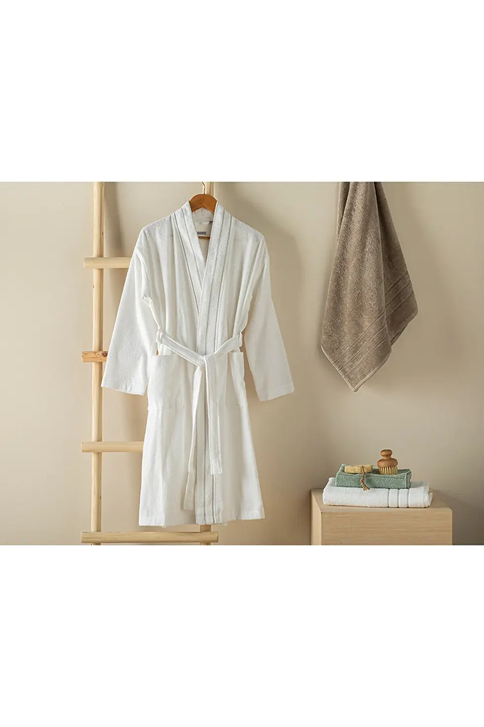 English Home Premium Kadife Bornoz Pamuklu Biyeli Bornoz S-m Beyaz - Gri