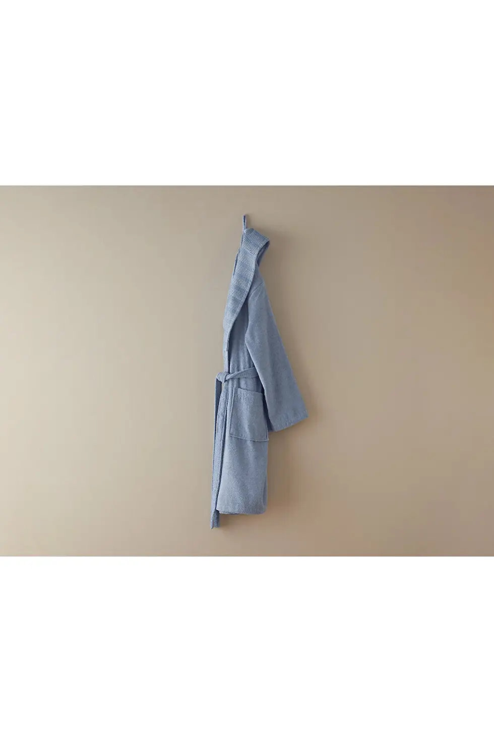 English Home Wolin Pamuk Polyester Bordürlü Bornoz Mavi