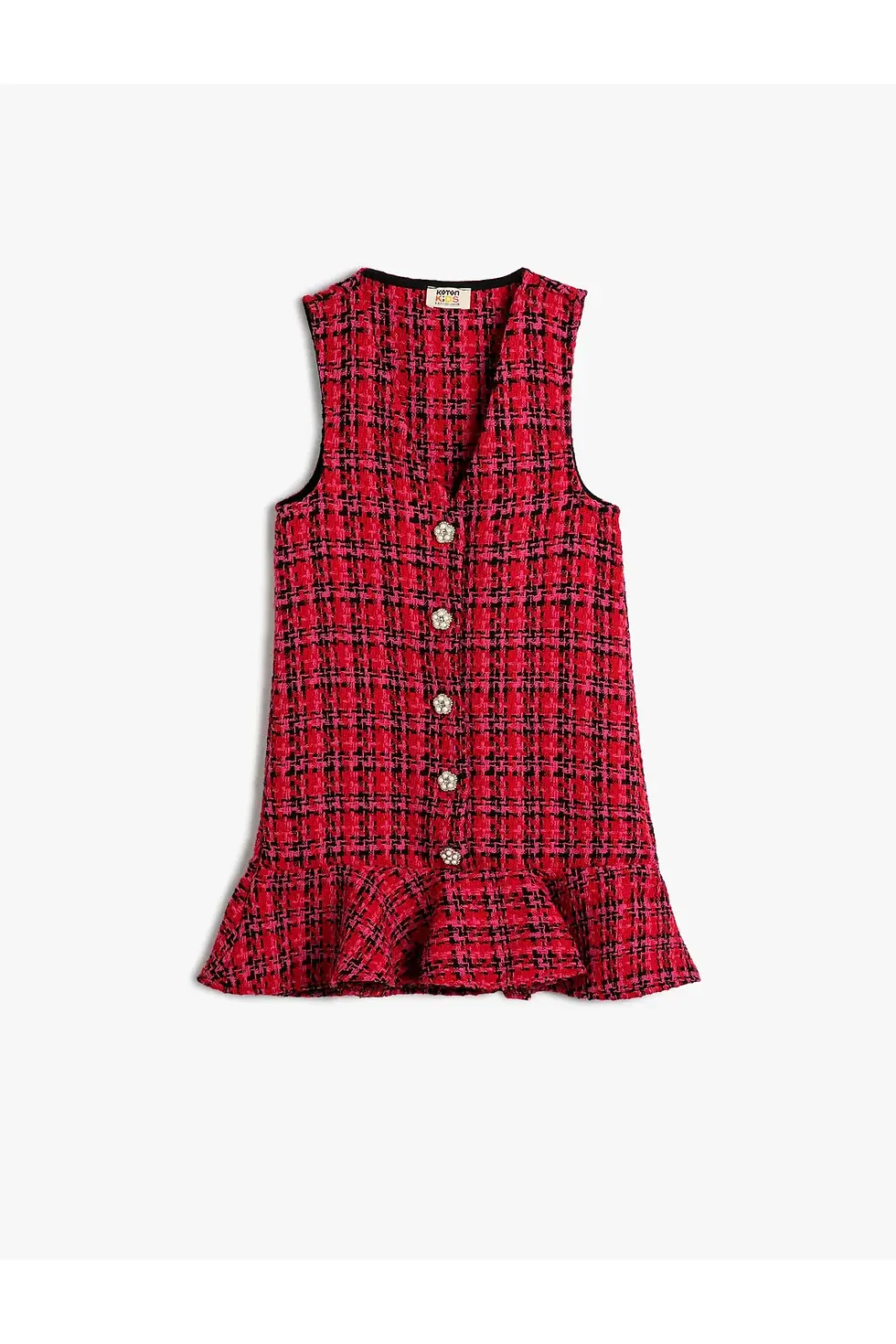 Koton Jile Elbise Kolsuz V Yaka Düğme Kapamalı Volanlı