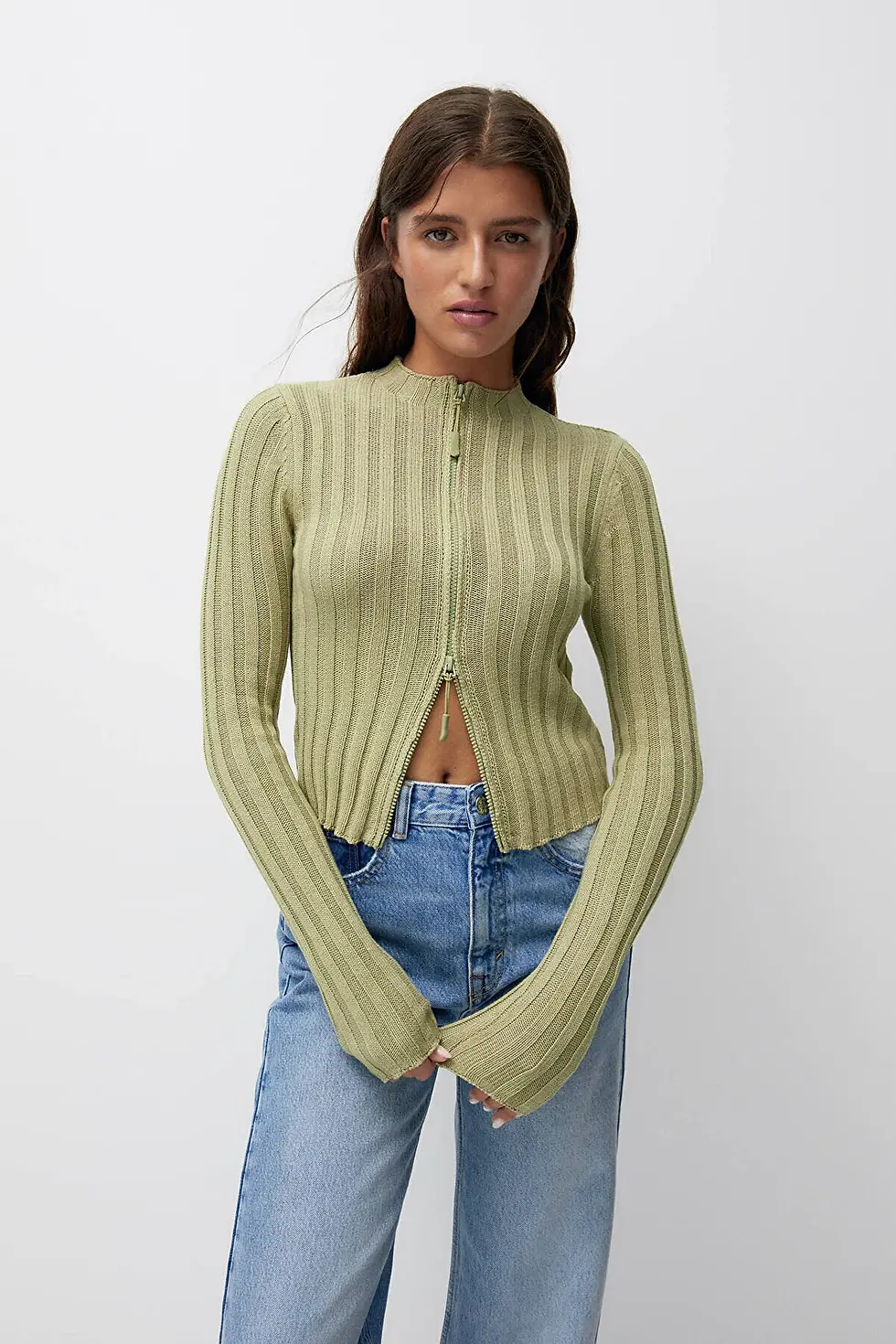 Pull & Bear Soluk efektli fermuarlı triko hırka