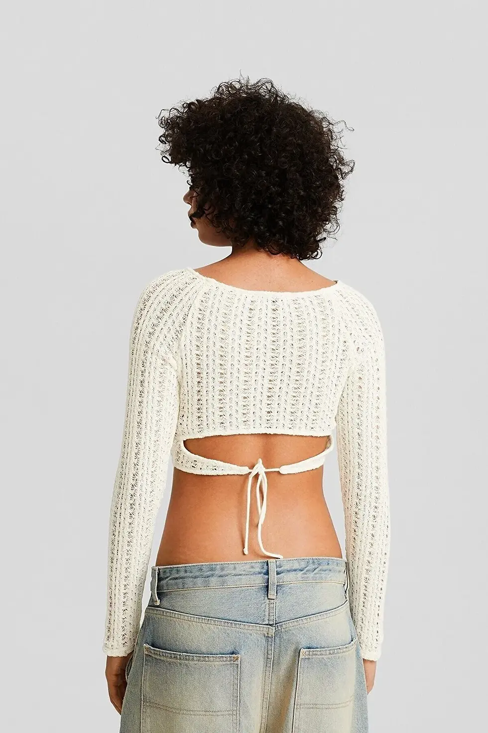 Bershka Sırtı açık kısa kollu fitilli kazak