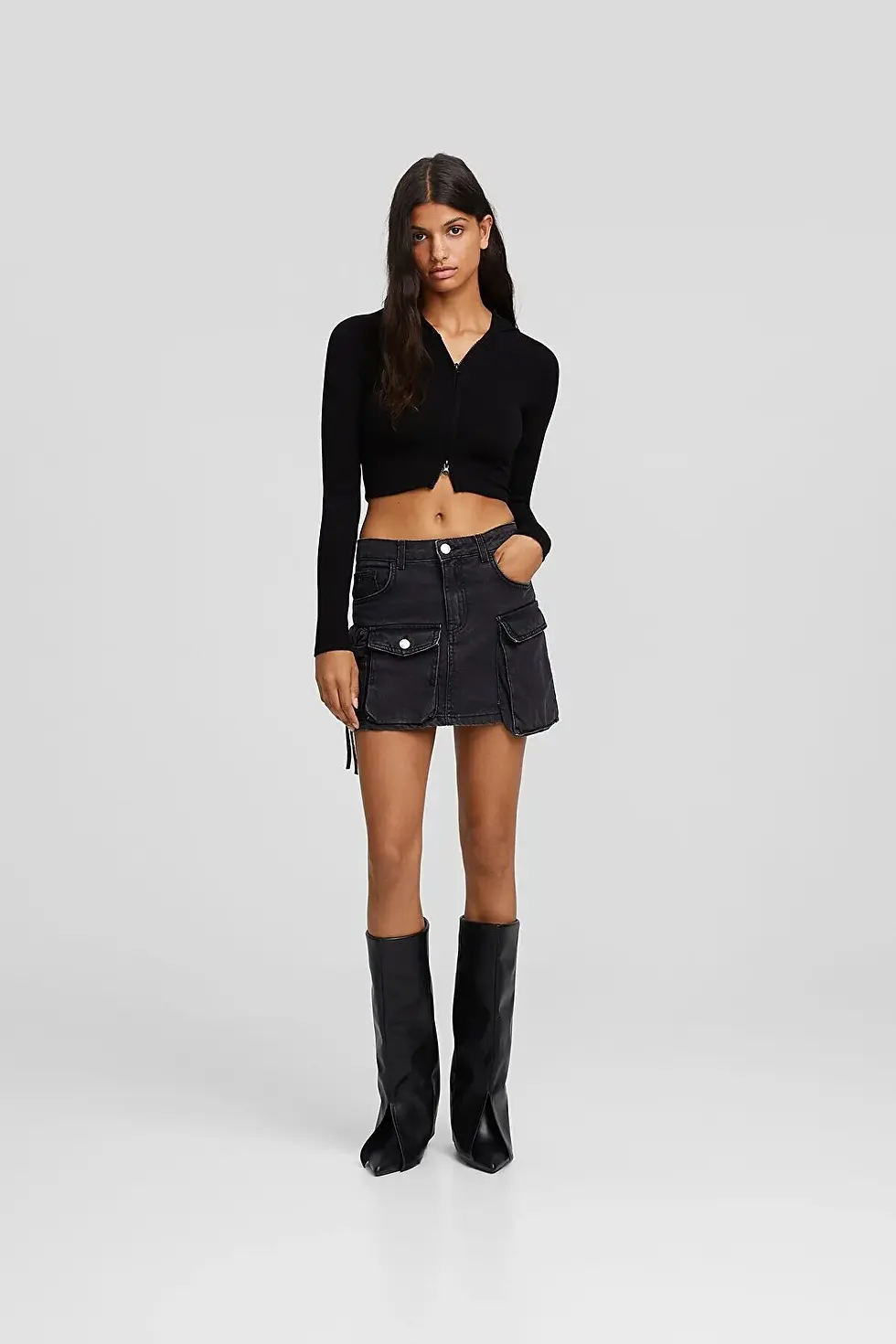 Bershka Kayık yaka fermuarlı hırka