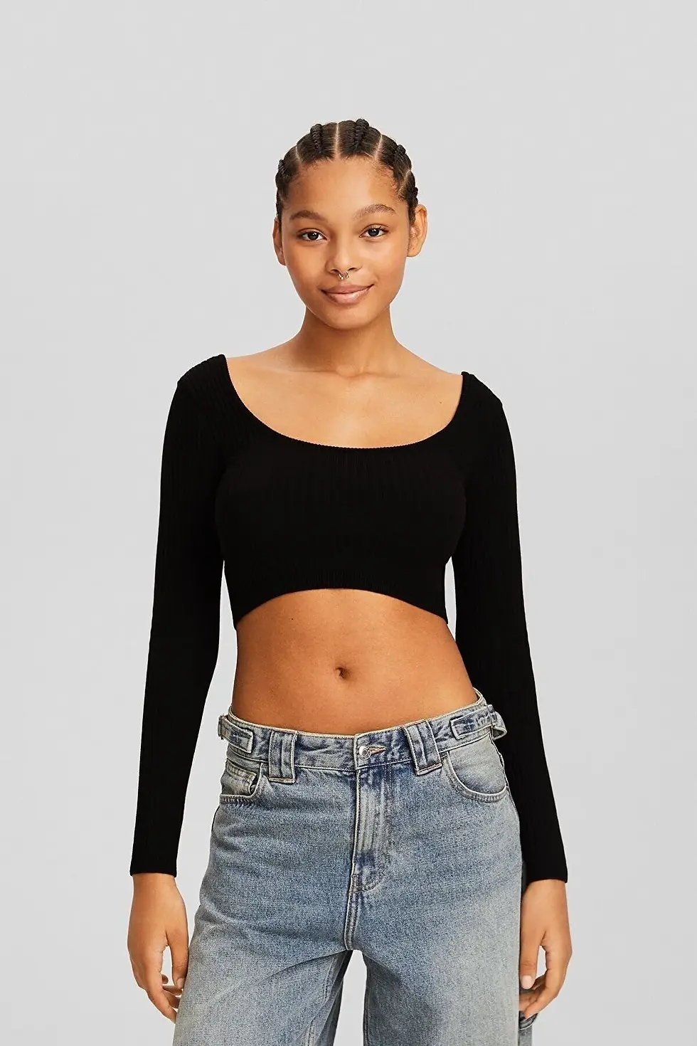 Bershka Derin yaka dekolteli crop kazak