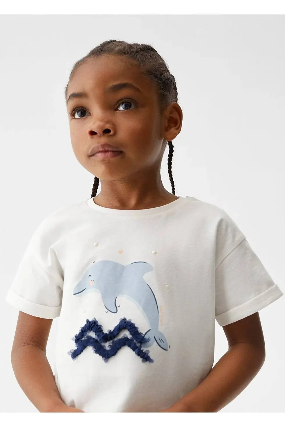MANGO Kids Kız Çocuk Kırık Beyaz T-Shirt