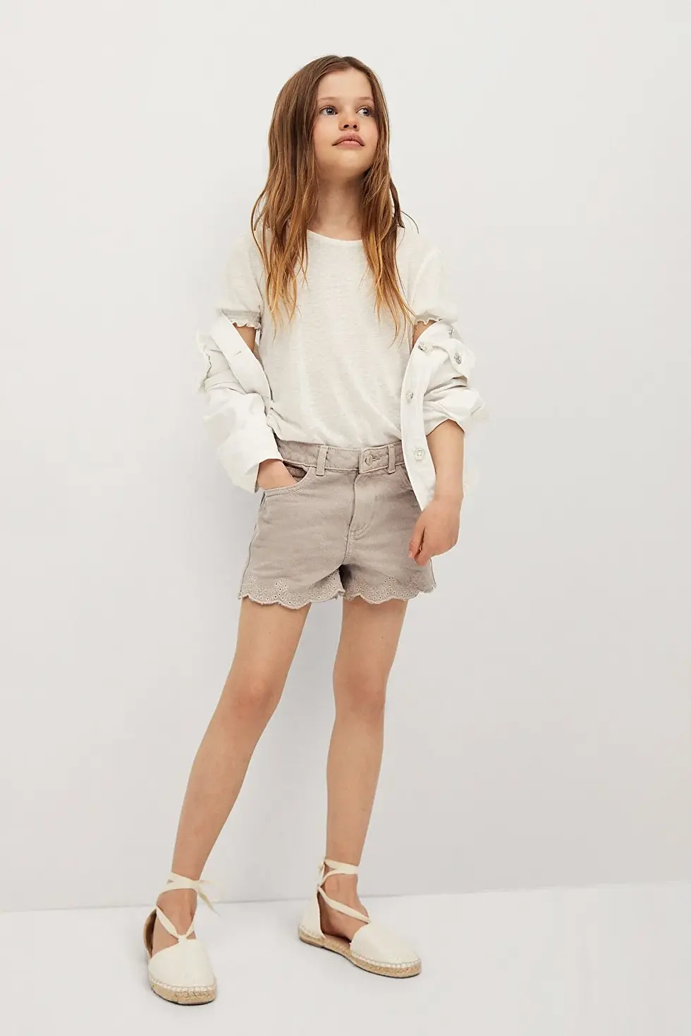 MANGO Kids Kız Çocuk Kırık Beyaz Tişört