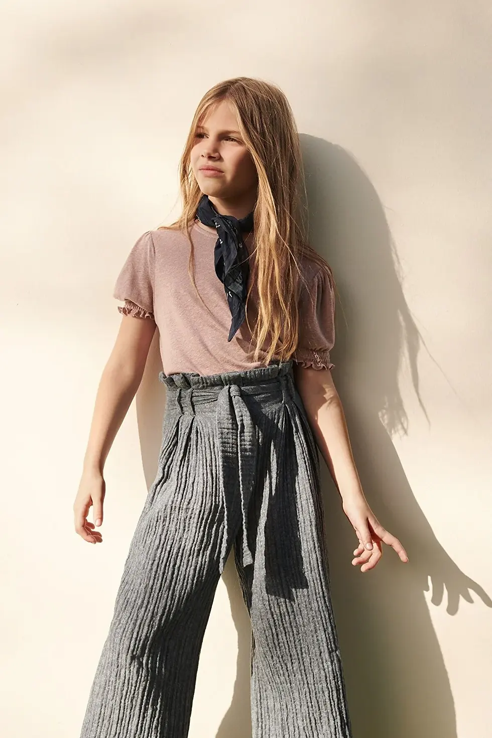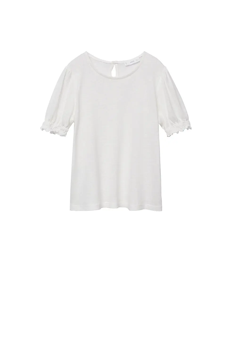 MANGO Kids Kız Çocuk Kolları Büzgülü Keten Tişört