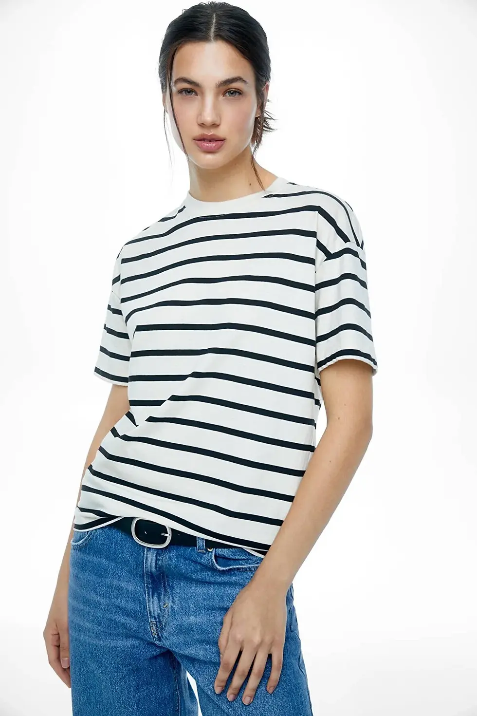Pull & Bear Kadın Çizgili kısa kollu t-shirt