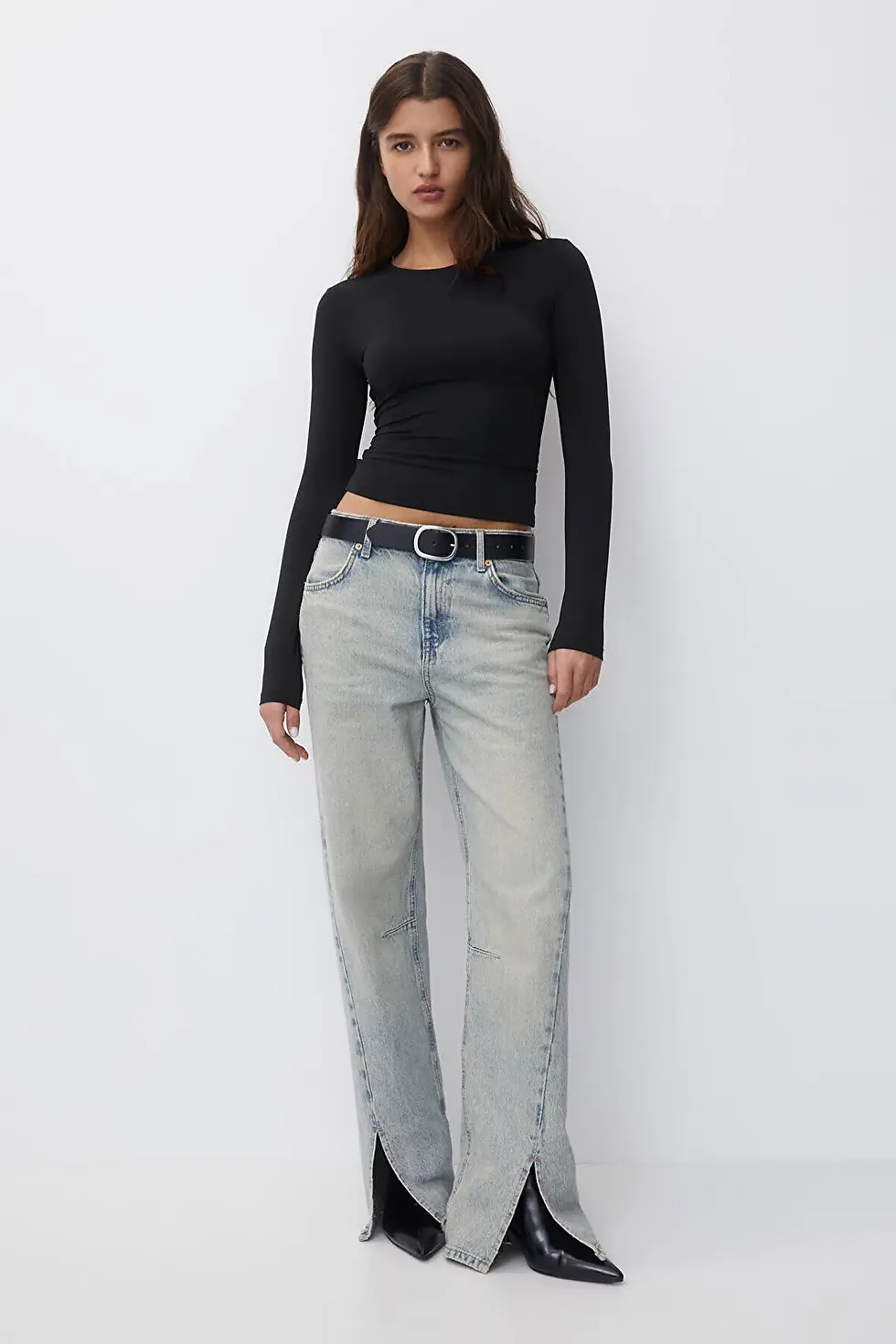 Pull & Bear Dikişsiz crop uzun kollu t-shirt