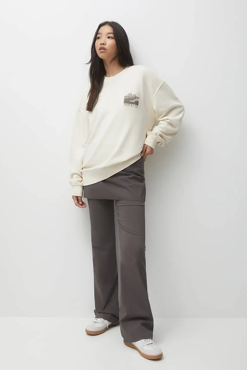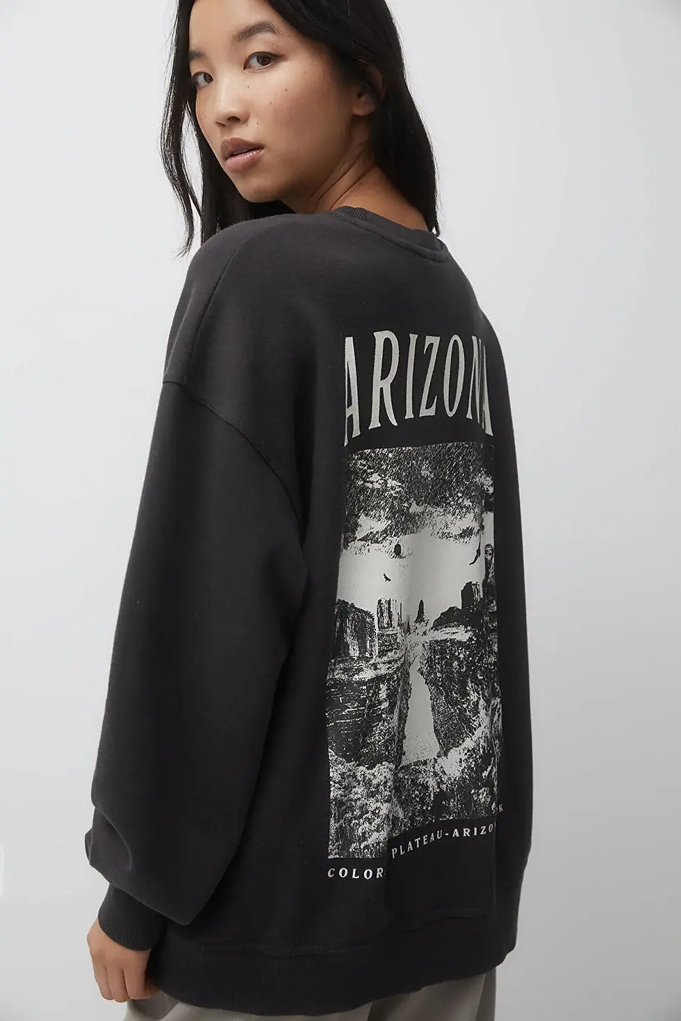 Pull & Bear Uzun kollu manzara grafik baskılı sweatshirt