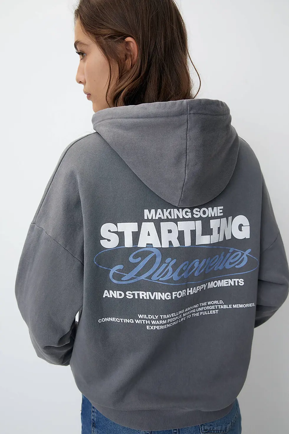 Pull & Bear Kapüşonu yazı baskılı sweatshirt