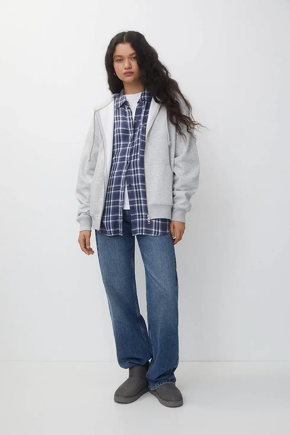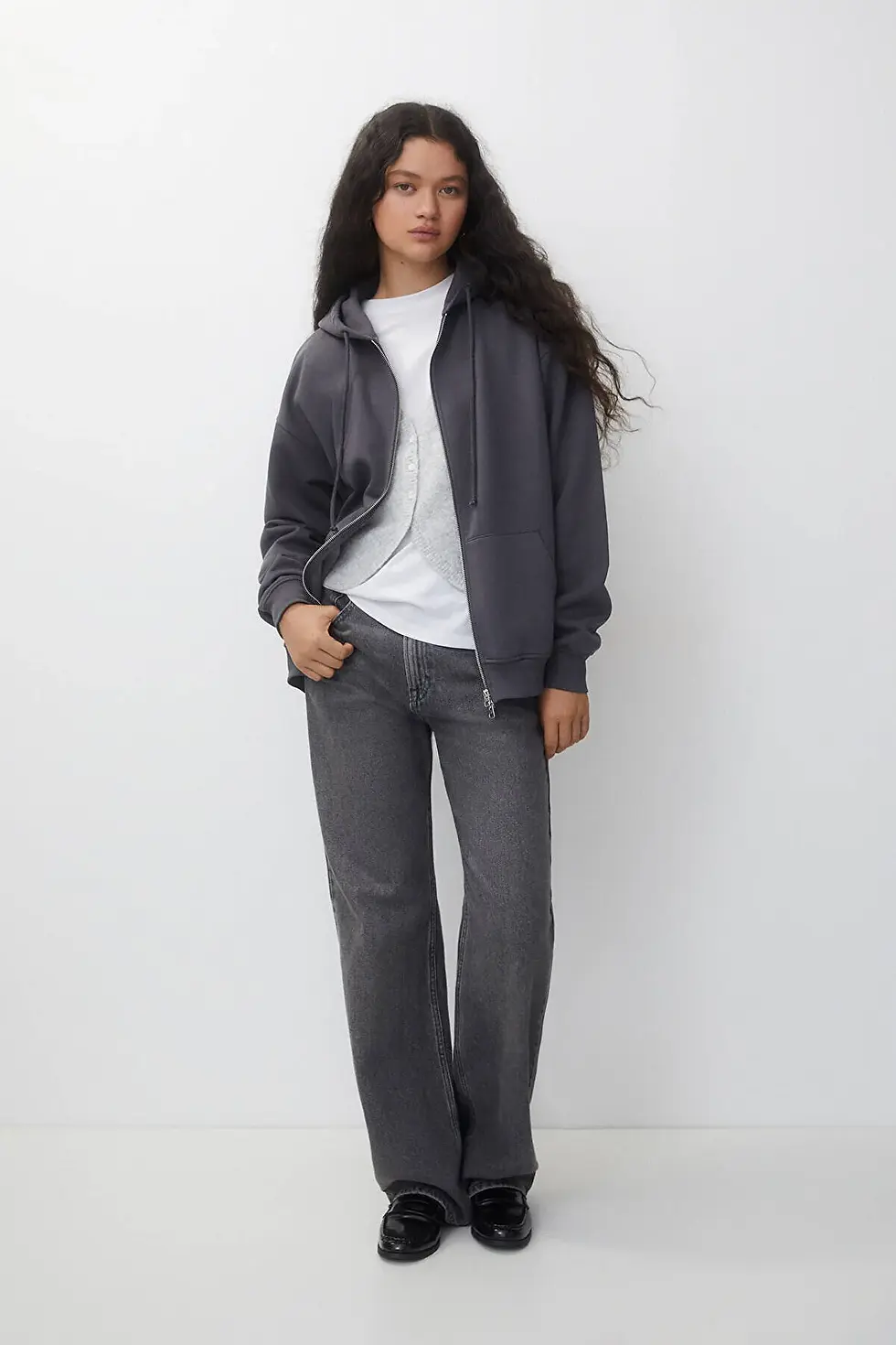 Pull & Bear Oversize fermuarlı kapüşonlu sweatshirt