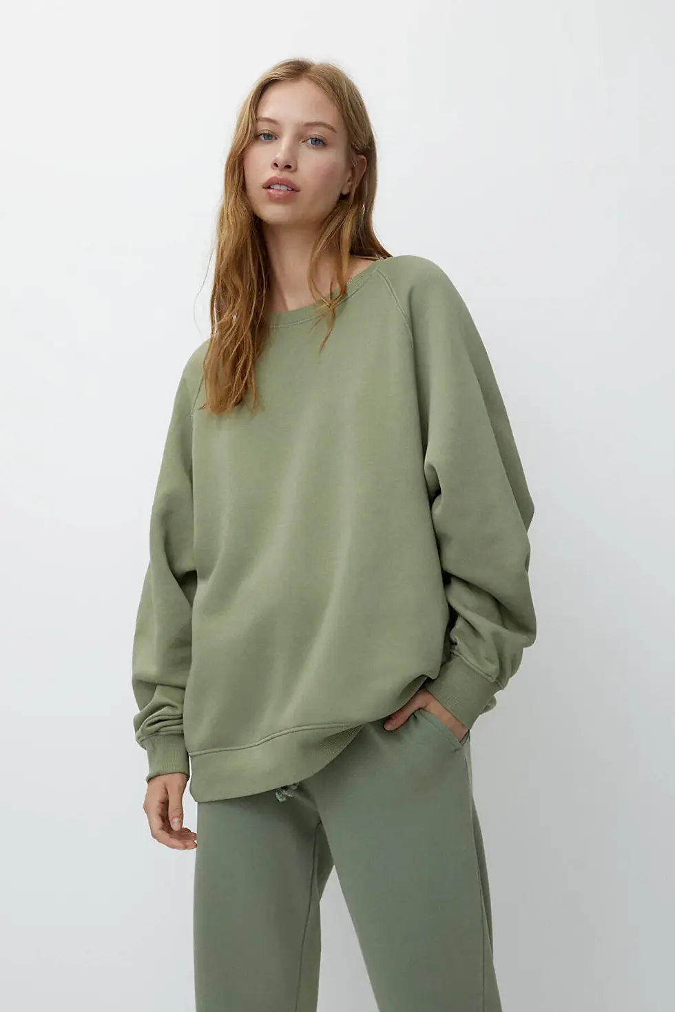 Pull & Bear Basic oversize bisiklet yaka sweatshirt