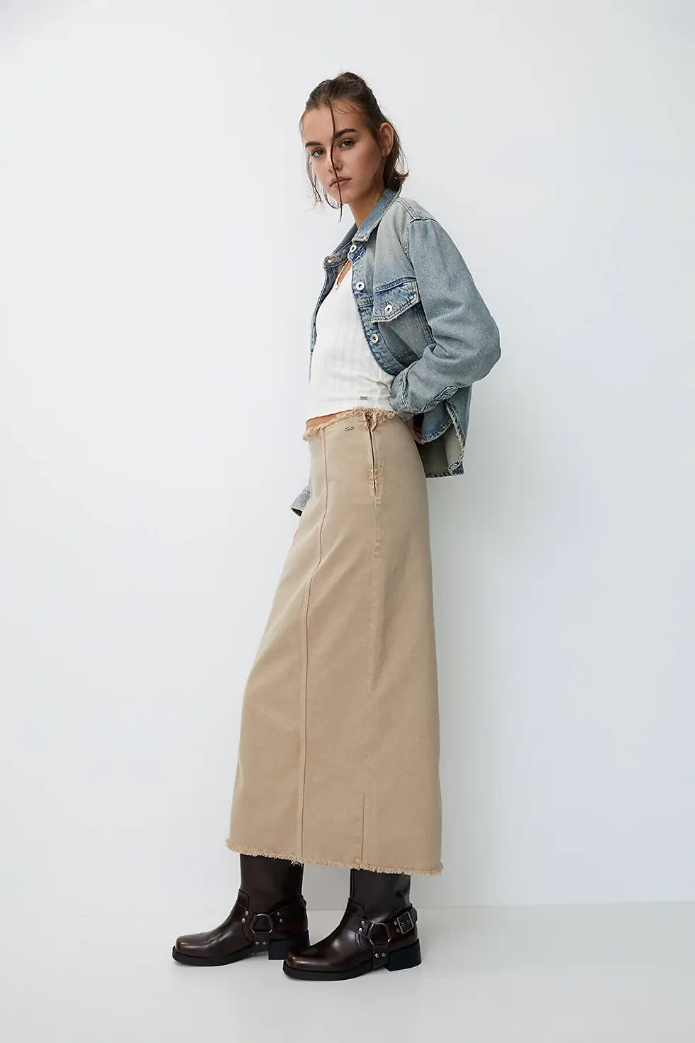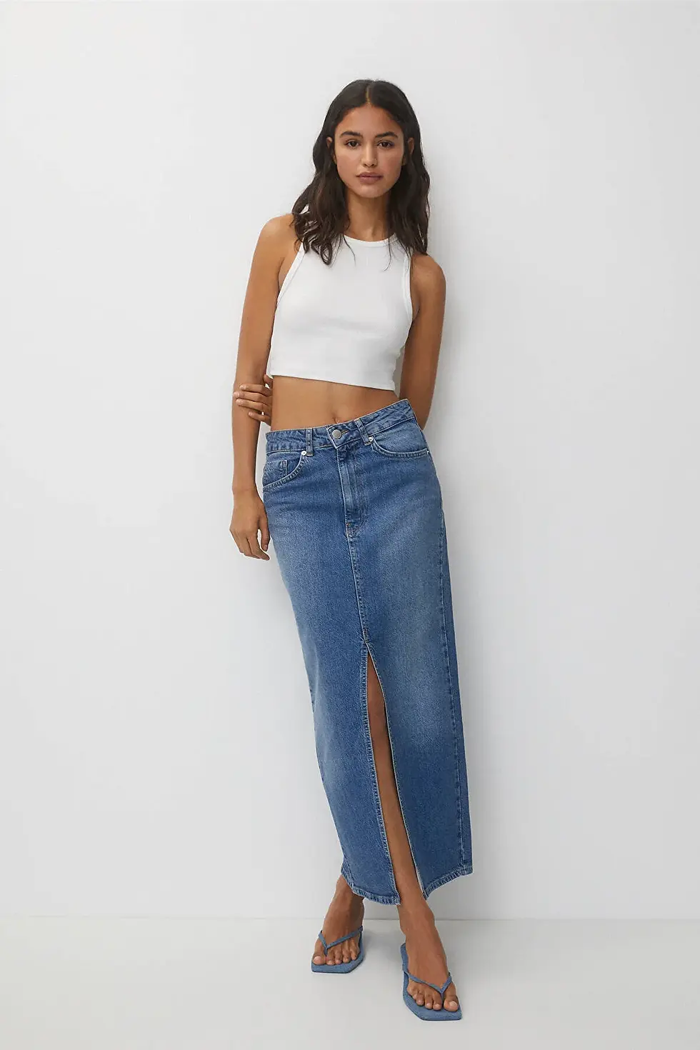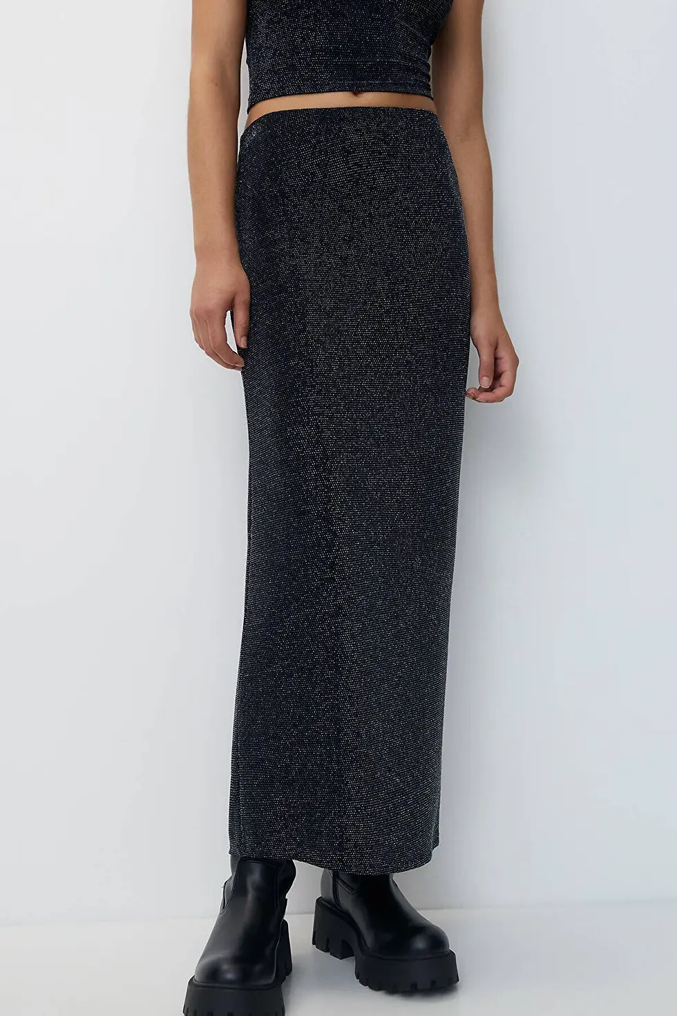 Pull & Bear Çift bel bantlı yumuşak triko midi etek