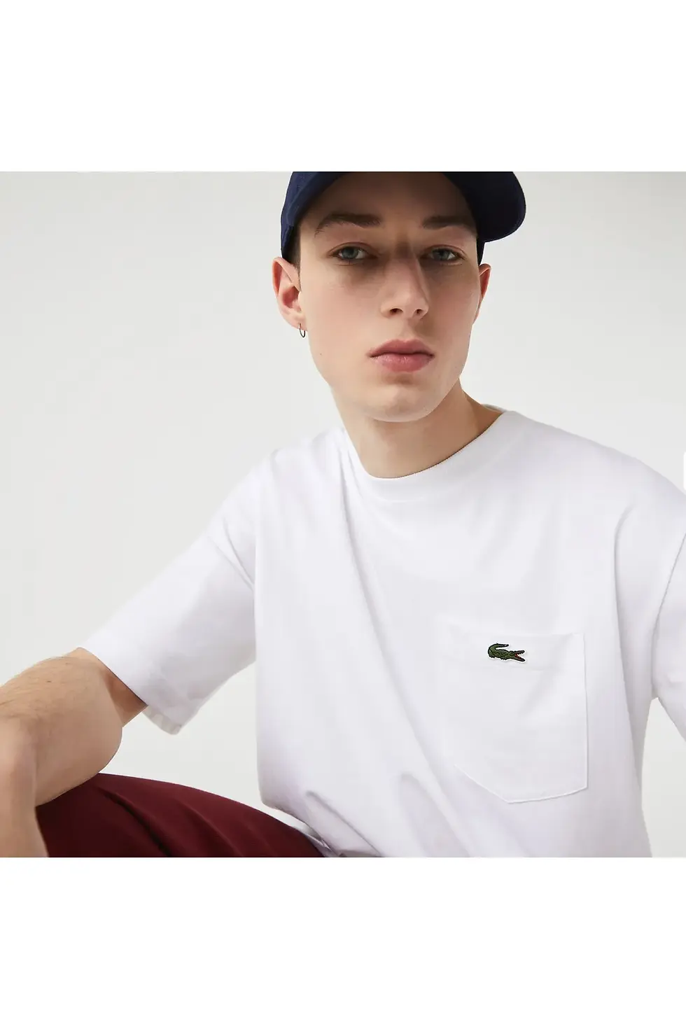 Lacoste L!ve Unisex Loose Fit Bisiklet Yaka Baskılı Beyaz T-shirt TH2748