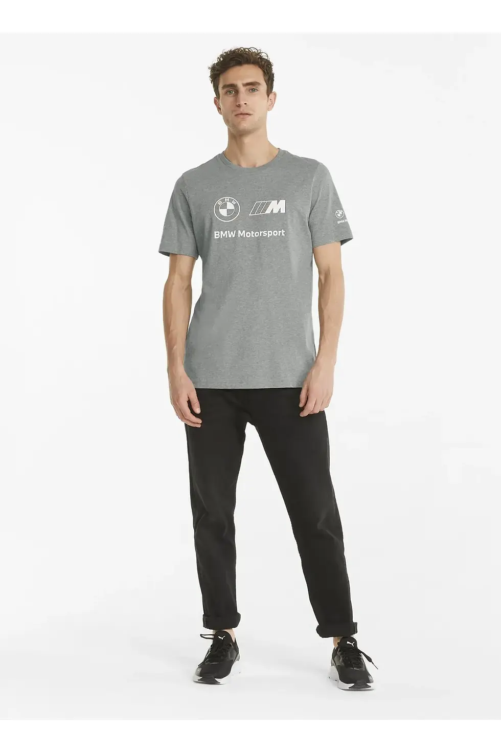 Puma Bisiklet Yaka Düz Gri Erkek T-Shirt BMW MMS Logo Tee+
